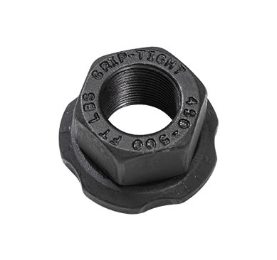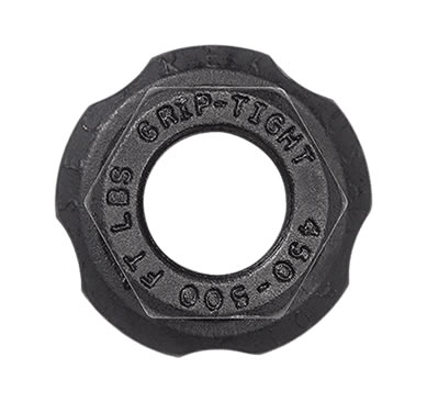 La tuerca GRIP-TIGHT™ hecha en los EE.UU. es producida a partir de acero semiduro endurecido y cada arandela de movimiento libre está fabricada con acero al cromo molibdeno templado y endurecido. La geometría de la tuerca GRIP-TIGHT™ y los recubrimientos se combinan para crear una traslación consistente y eficiente desde el torque hasta la fuerza de sujeción.